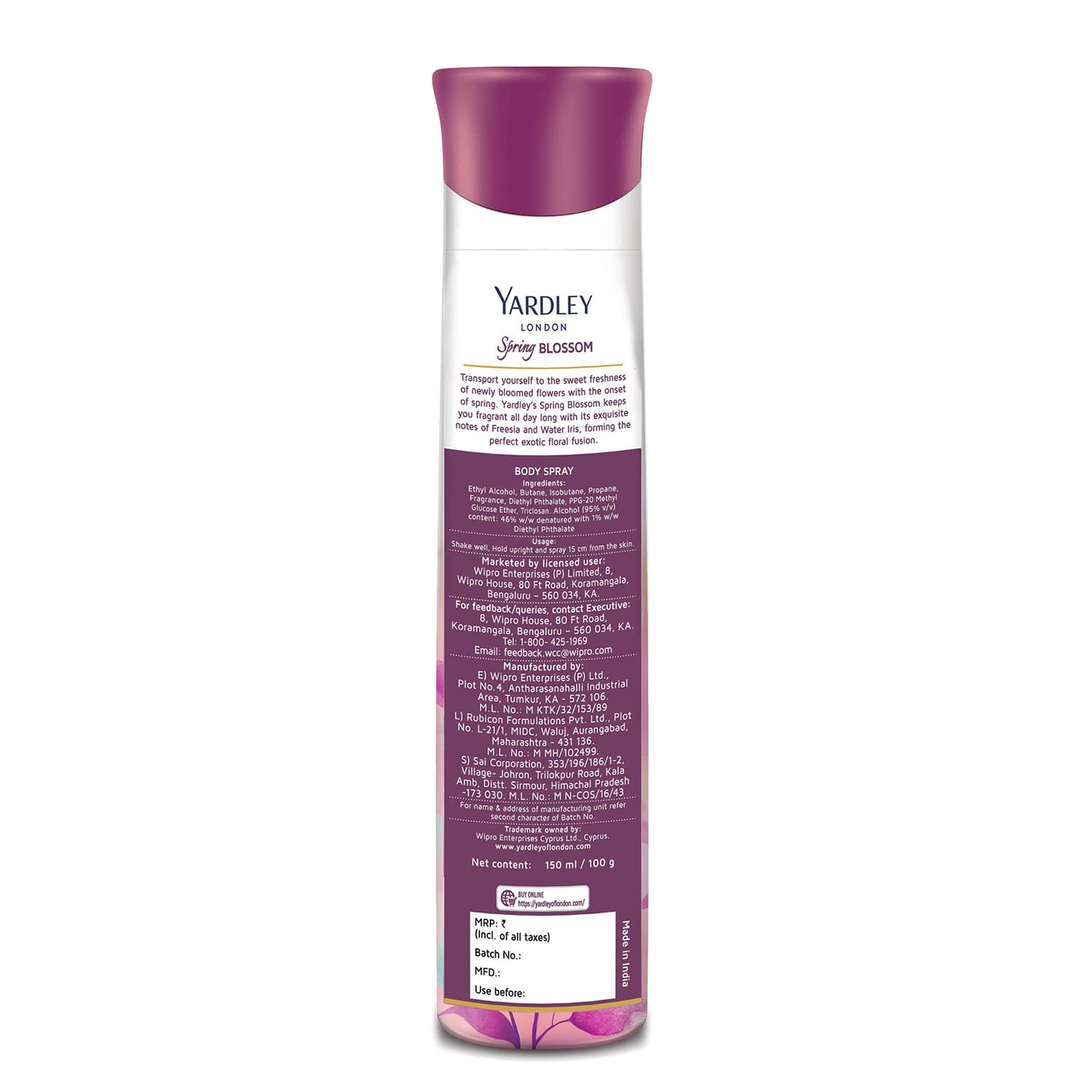 Experience the sweet embrace of spring all year round with Yardley London's Spring Blossom Refreshing Body Spray. This 150ml bottle holds the secret to capturing the freshness of newly bloomed flowers. With its exquisite Freesia and Water Iris blend this body spray is an exotic floral fusion that will keep you fragrant and refreshed throughout the day. Each spritz transports you to a world where spring is eternal and the air is filled with the aroma of blossoming flowers. This fragrant masterpiece comes from The House of Yardley a brand steeped in over 250 years of tradition known for its classic and premium floral fragrances. Yardley London embodies the quintessential English luxury and Spring Blossom is no exception. Embrace the elegance of blooming flowers indulge in the freshness of spring and carry it with you wherever you go. Yardley's Spring Blossom Body Spray is more than a fragrance; it's an invitation to experience the beauty of spring every day.