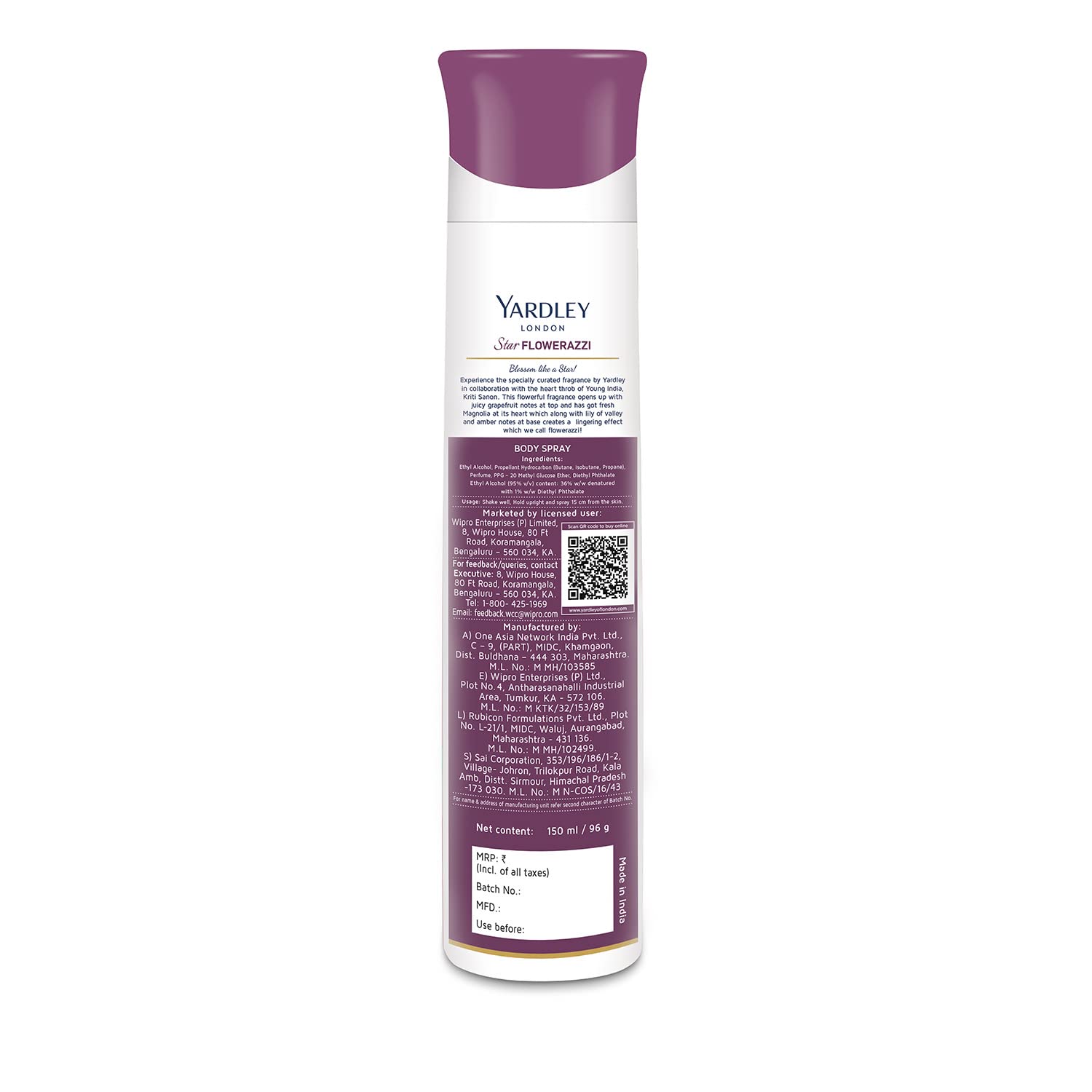 Introducing Yardley London's Limited Edition Star Flowerazzi Refreshing Perfume Spray a fragrant masterpiece created in collaboration with the captivating Kriti Sanon. This exquisite perfume spray offers a sensory journey like no other. At the top indulge in the vibrant and juicy notes of grapefruit setting the stage for an unforgettable olfactory experience. As the fragrance unfolds fresh Magnolia takes centre stage accompanied by the delicate charm of Lily of the Valley and anchored by the warmth of Amber in the base. The result? A lingering effect that we fondly call "flowerazzi." From the House of Yardley celebrated for over 250 years as one of England's premier purveyors of quality perfumes this limited-edition fragrance encapsulates the essence of English luxury. When you choose Star Flowerazzi you're not merely wearing a scent; you're embracing a symphony of floral notes curated for today's modern women. This premium perfume spray doesn't just offer long-lasting freshness; it's an invitation to embark on a fragrant journey that lingers elegantly throughout your day. The collaboration with Kriti Sanon adds a touch of youthful exuberance to the timeless quality that Yardley is known for.