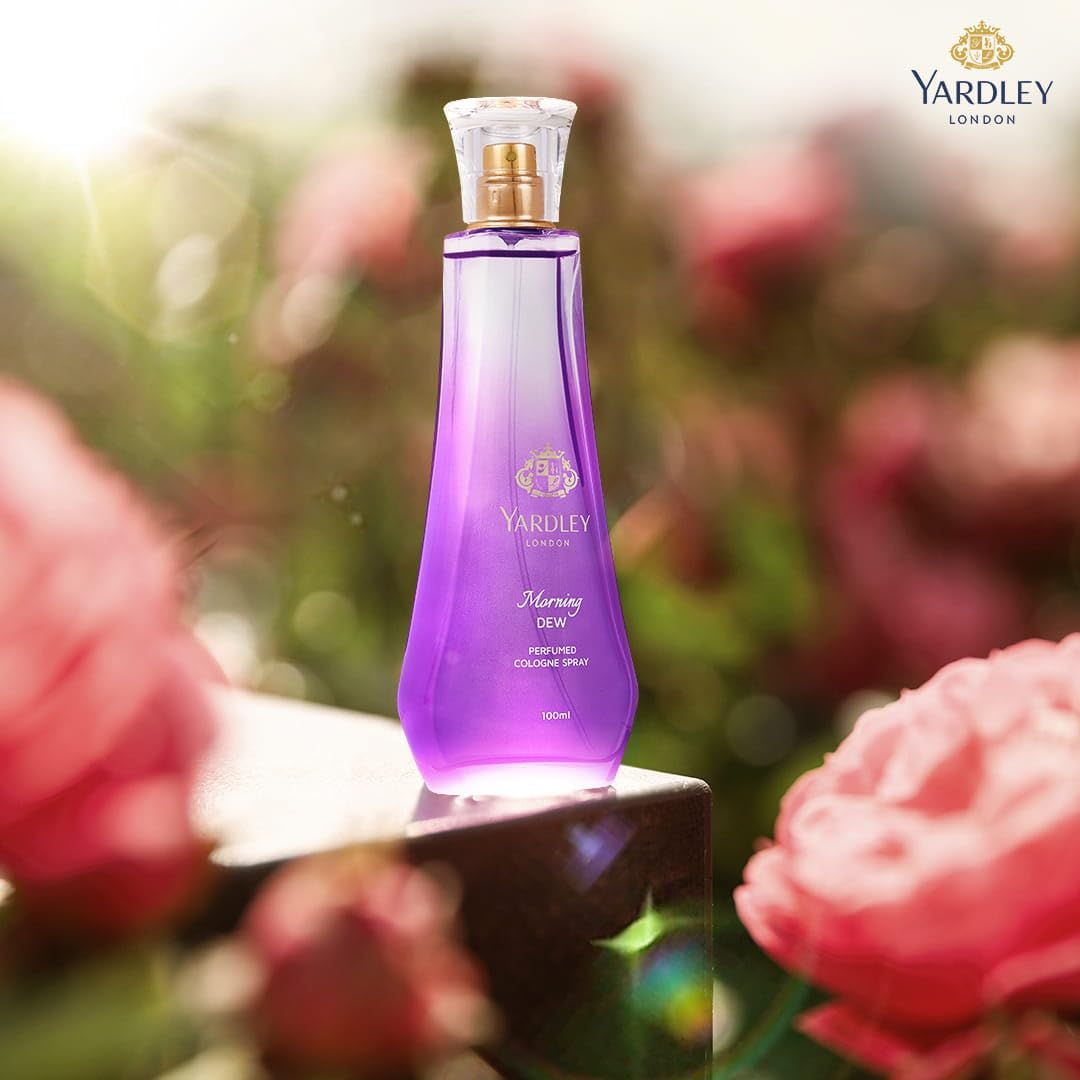 Awaken your senses to the enchanting allure of Yardley London Morning Dew Daily Wear Perfume for Women. Transport yourself to the picturesque morning in London where the Thames glistens under the caress of the rising sun setting the stage for a cheerful and playful day. The exquisite fragrance of this daily wear perfume spray is delicately crafted with a symphony of notes to capture the essence of a dewy morning. Embrace the burst of freshness with Morning Dew womenâs daily wear perfume carefully curated with the essence of Freesia and Rose infused with the lively burst of Mandarin and enriched by captivating Musk at its base. Each ingredient has been chosen meticulously from the exotic gardens of England ensuring a fragrance that resonates with your daily routine and enhances special moments.The legacy of Yardley London spans over 250 years a testament to our commitment to crafting authentic premium-quality floral fragrances and body products. Immerse yourself in the embrace of Yardley's fresh floral fragrances a gift from the English countryside to elevate your daily routine. With Yardley you're not just wearing a fragrance; you're wearing a piece of quintessential English history.
