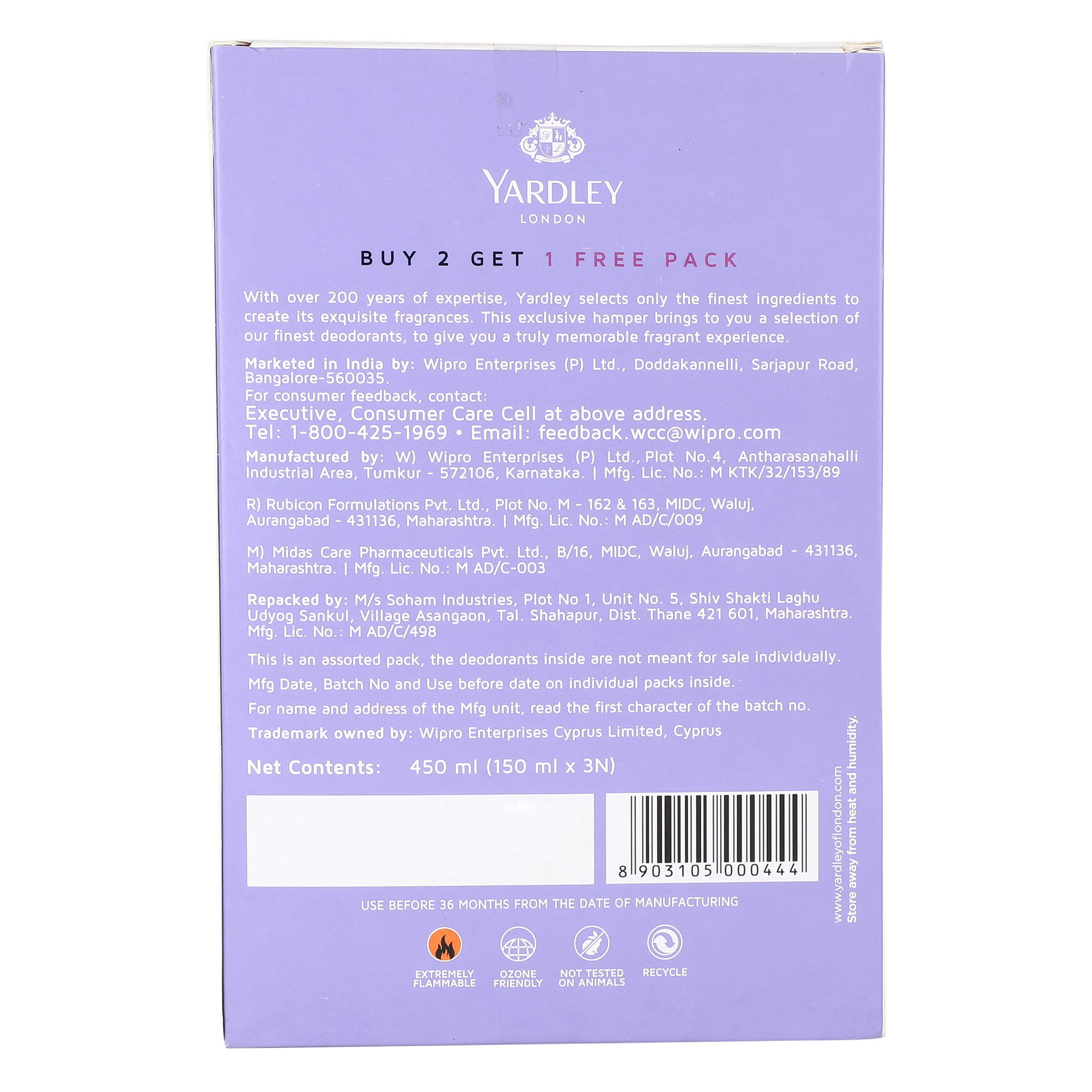 Get pampered in pure luxury with the enchanted range of Yardley Refreshing Body Spray created with the finest fragrances brought from the gardens of England. The Yardley Limited Edition Womenâs Deo Pack carries the rich legacy of the Yardley craftsmanship. The product exploits the aristocratic heritage of infusing authenticity intensity and femininity making it a genre of its own.