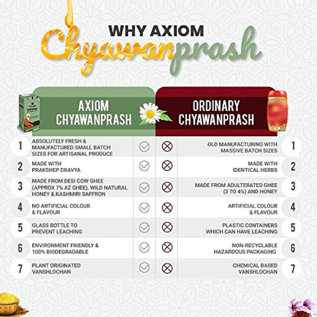 CERTIFICATION & DOSES: Axiom Royal Ayurvedic Chyawanprash is a WHO GMP GLP certified. Chyawanprash can be used by all age groups in every season as its ingredients nullify the unpleasant effects of intense weather and climate or environmental change. The