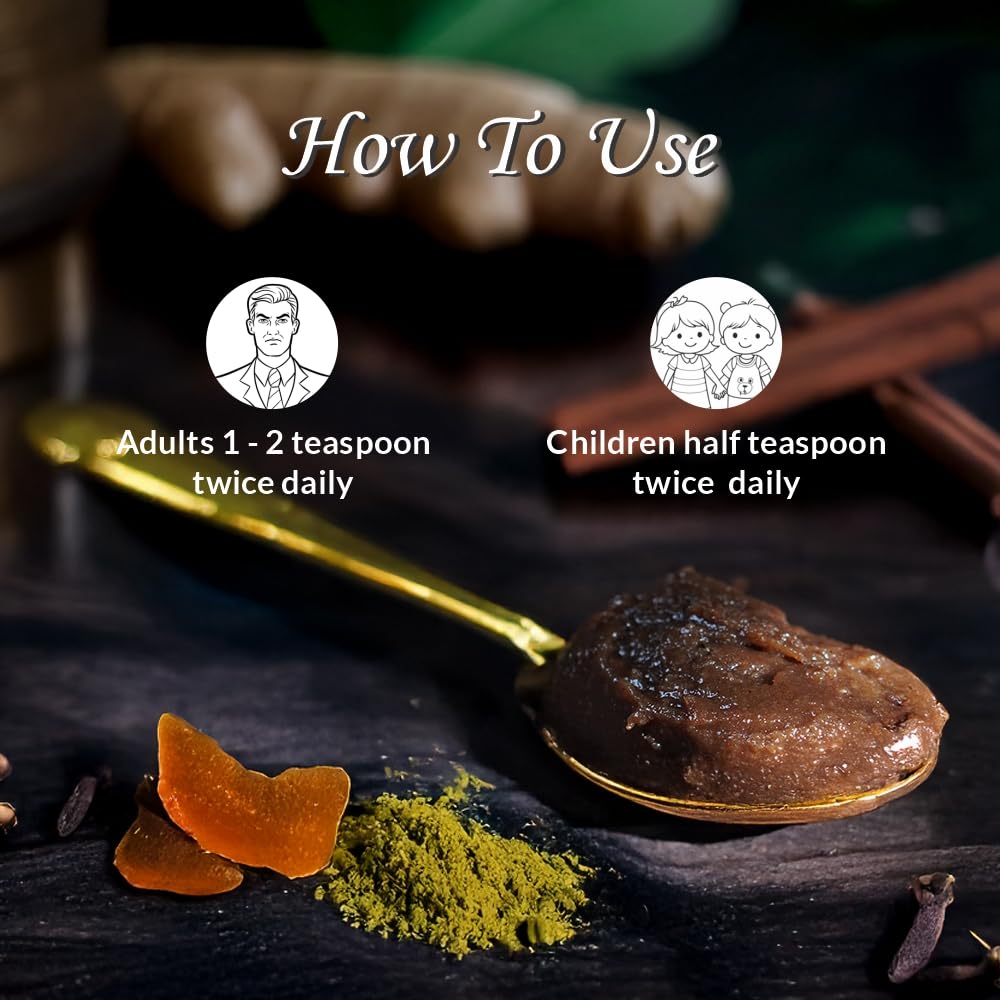 HOW TO USE: The general dosage of Chyawanprash 1-2 Teaspoonfuls twice a day administered with lukewarm water. Children below 10 years up to half teaspoon twice a day or as directed by physician