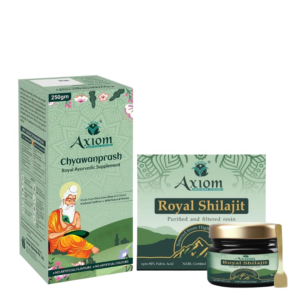 Axiom Royal Wellness Combo | Chyawanprash 250g + Himalayan Shilajit 20g | Infused with Pure & Natural Ayurvedic Herbs | Helps to enhance immunity Muscles Strength