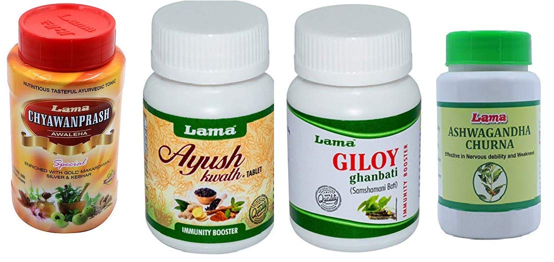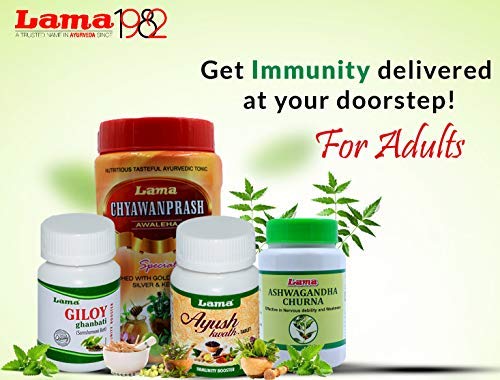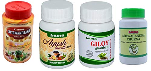 Lama Immunity Pack (Giloy Ghan Bati Ayush Kwath Tablet Ashwagandha Churna Chyawanprash Special 500g) -1 pc each ISO 9001:2000 AND GMP CERTIFIED Product: So be sure of the purity quality and authenticity..