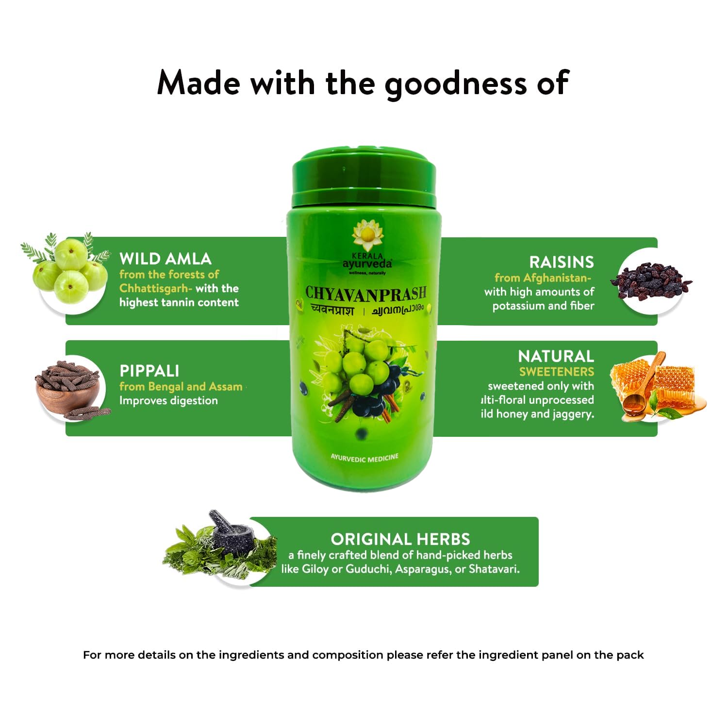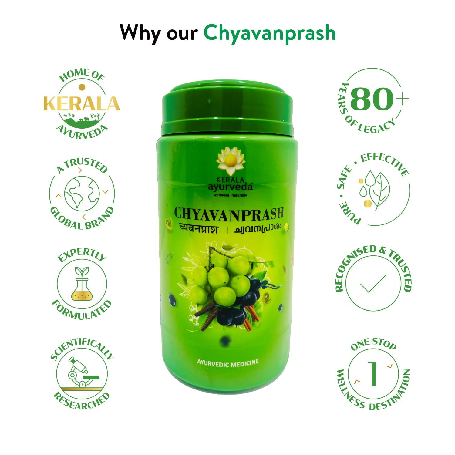 WHY CHOOSE KERALA AYURVEDA Kerala Ayurveda Chyawanprash crafted with an ancient recipe from Ashtanga Hridayam enhances immunity stamina and energy. Embrace the benefits of this authentic supplement deeply rooted in Ayurvedic tradition for a healthier more