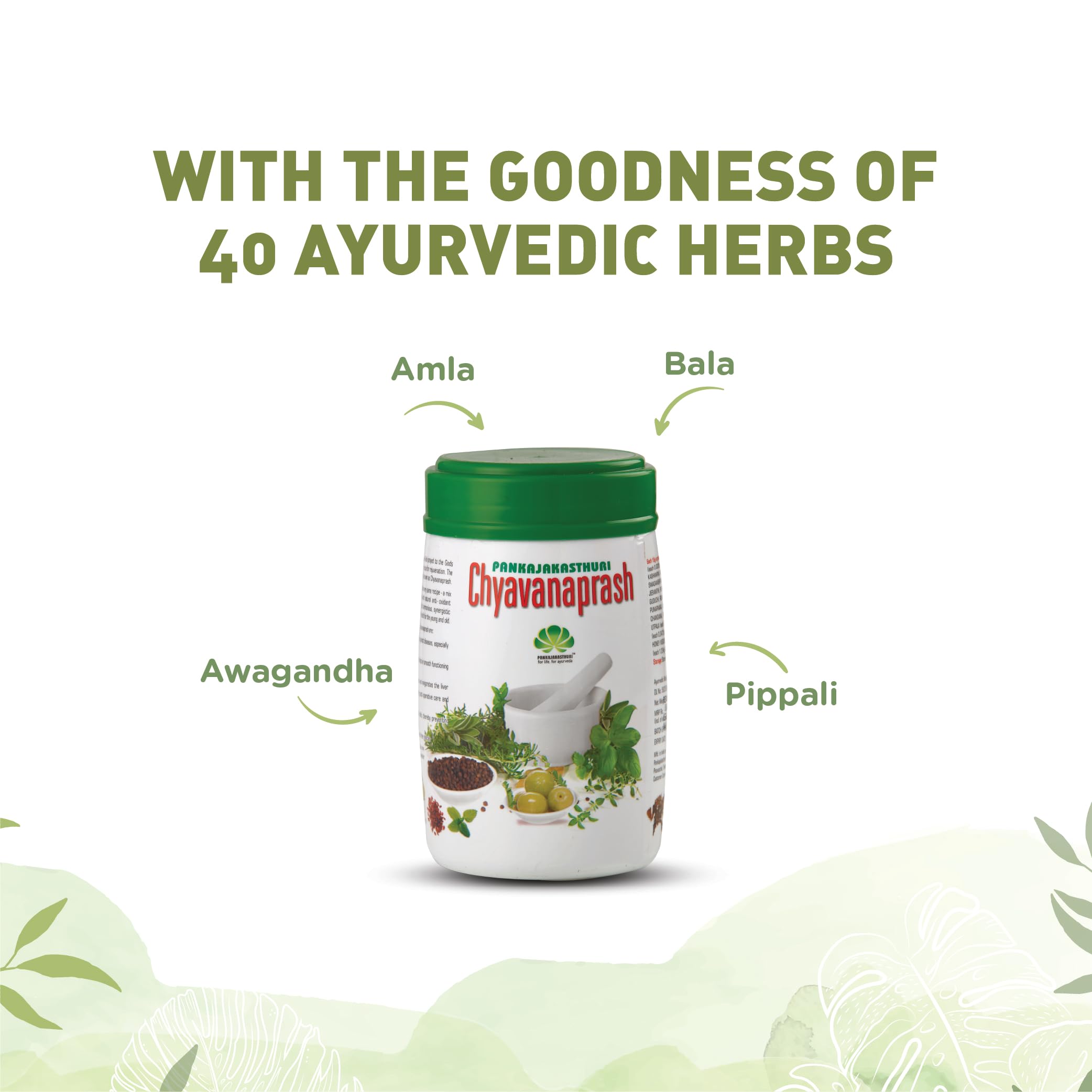 Chyavanaprash is named after the ancient saint Chyavana who regained his youth and vitality by using this formulation. Rich in gooseberries and 40 powerful ayurvedic herbs this is a unique formulation which imparts incomparable Rasayana properties to the body nourishes Dhatus and prevents from diseases. Its harmonious synergistic action in the body leads to better health for the young and old. This is a geriatric tonic which is rich in Antioxidants Vitamin C and immuno modulators