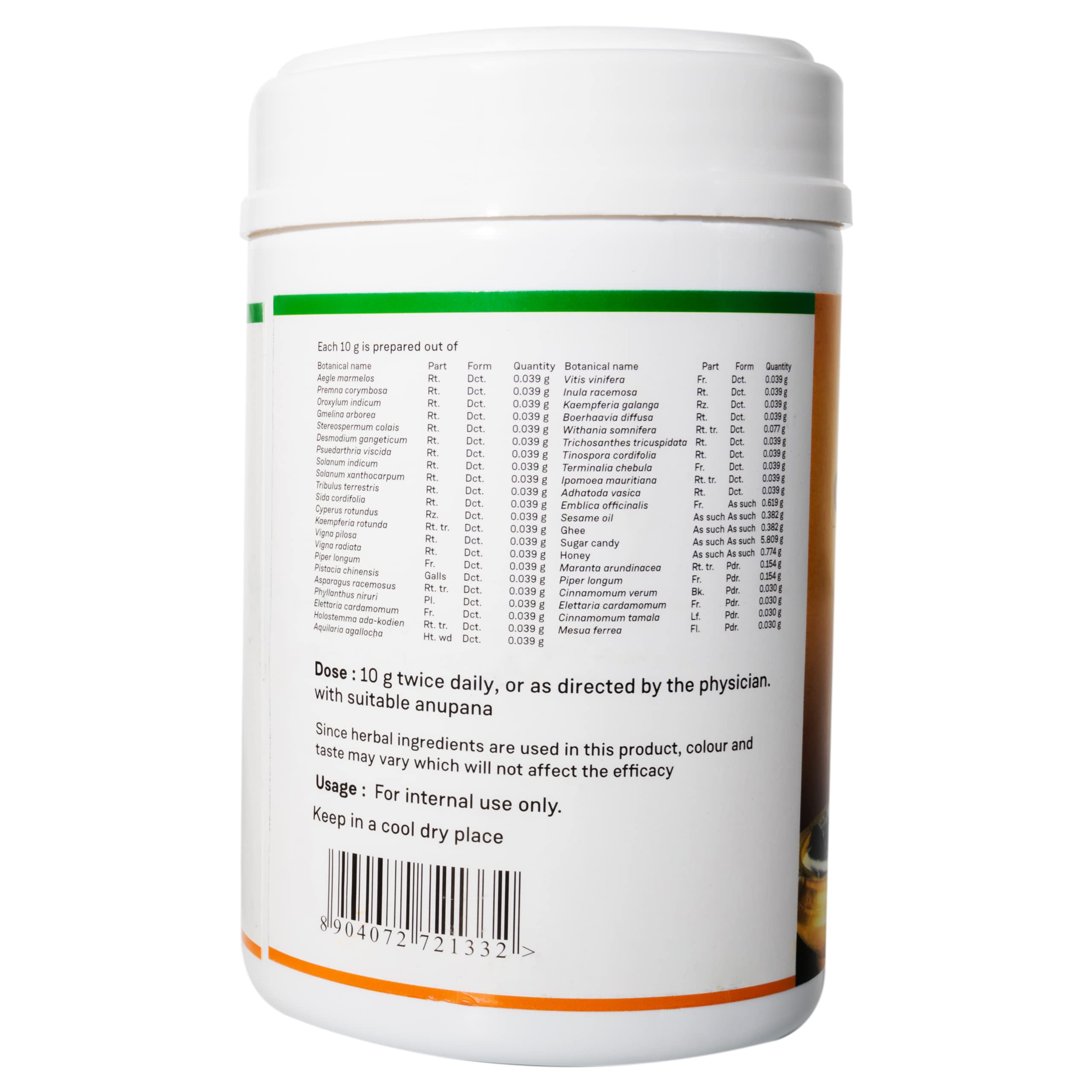 Chyavanprasa is a sweet semi-solid preparation widely acclaimed for its restorative and vitalizing properties. With Amla (Indian gooseberry) as its main ingredient coupled with select herbs and spices with anti-and appetite-inducing properties in a satiating base of milk ghee and candy sugar it nourishes the body in a wholesome manner. It may even be substituted for a meal in persons with a healthy apparatus.