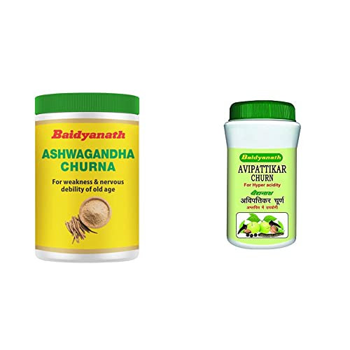Baidyanath Ashwagandha Churna - Helps Boost Energy - 100g (Pack of 2) and Baidyanath Avipattikar Churna - For Hyperacidity and Digestion - 120 g