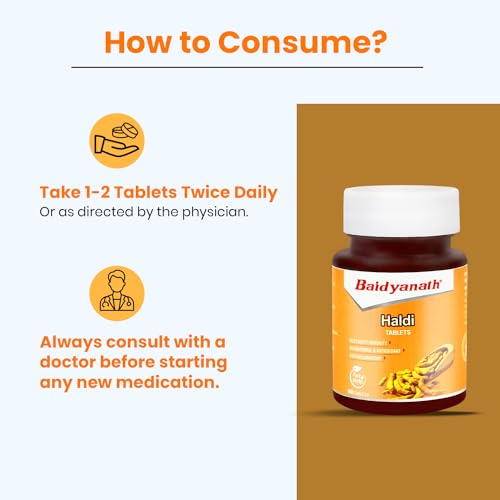 Discover the power of nature with Baidyanath Turmeric Tablets enriched with pure and natural Haldi (Turmeric) extract. Unlock a world of health benefits as you embark on a journey towards improved immunity clearer skin enhanced digestion and overall wellness. These tablets help fortify your immune system making it more robust in the face of various infections and illnesses. Turmeric is known for its ability to cleanse the blood promoting better circulation and detoxification. Regular use of these tablets can contribute to a healthier circulatory system. Experience the beauty benefits of turmeric as it helps combat skin problems. Its properties may soothe skin irritations promote a healthy complexion and provide a natural glow. Turmeric has been used for centuries to aid digestion. These tablets can help strengthen your digestive system alleviate discomfort and promote overall gut health. Baidyanath is a trusted name in Ayurvedic wellness. Our Turmeric Tablets are made with the highest quality standards ensuring purity and effectiveness. These convenient tablets are easy to incorporate into your daily routine. No need to worry about the bitter taste of raw turmeric. Simply swallow with water or your favorite beverage. Enhance your well-being with Baidyanath Turmeric Tablets. Harness the power of natural Haldi extract to boost your immunity purify your blood address skin concerns and support your digestion. Elevate your health with the time-tested wisdom of Ayurveda. Start your journey to a healthier you today!