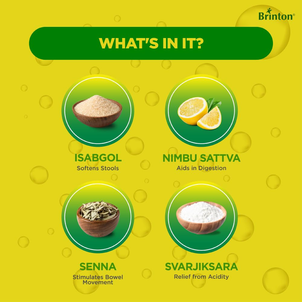 Brinton Tummy Fresh To Relief From Constipation Gas & Acidity | Improves Digestion | Soluble Isabgol | Effervescent | Zesty Lemon Flavour (Sugar-Free) - 100g