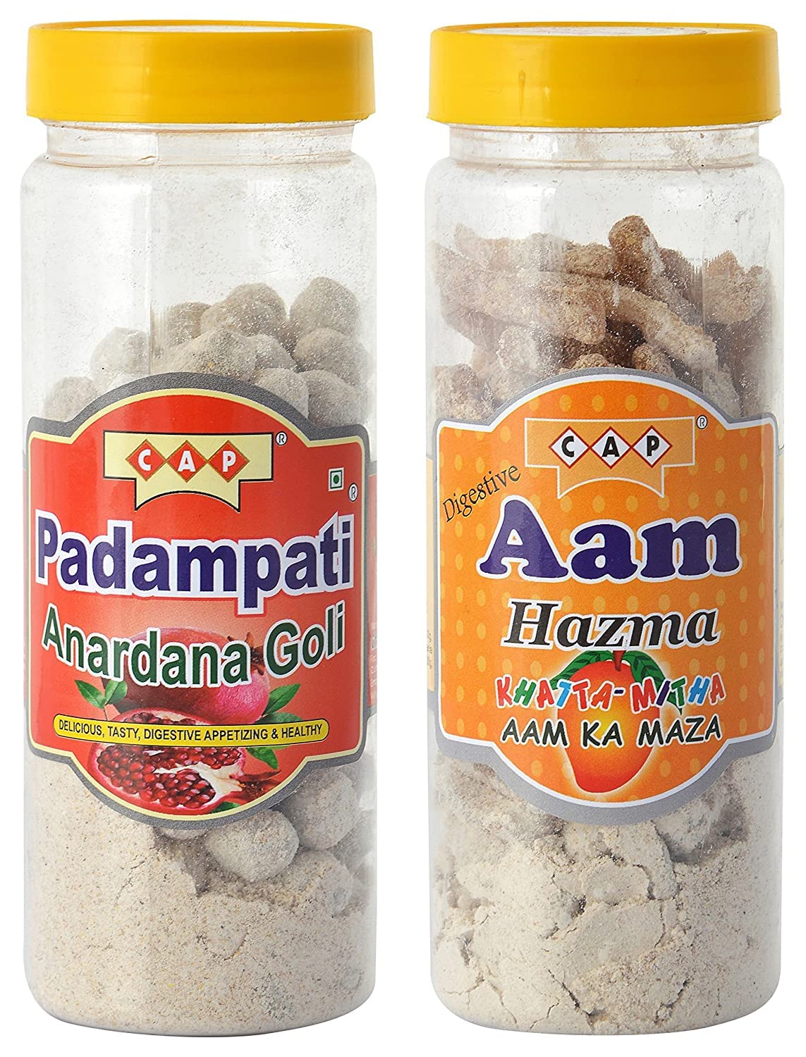 cap Anardana Goli & Aam Papad Pachak Slice Khatta Mitha Churan Tasty Healthy Combo - 380 Grams Total (Pack of 2)