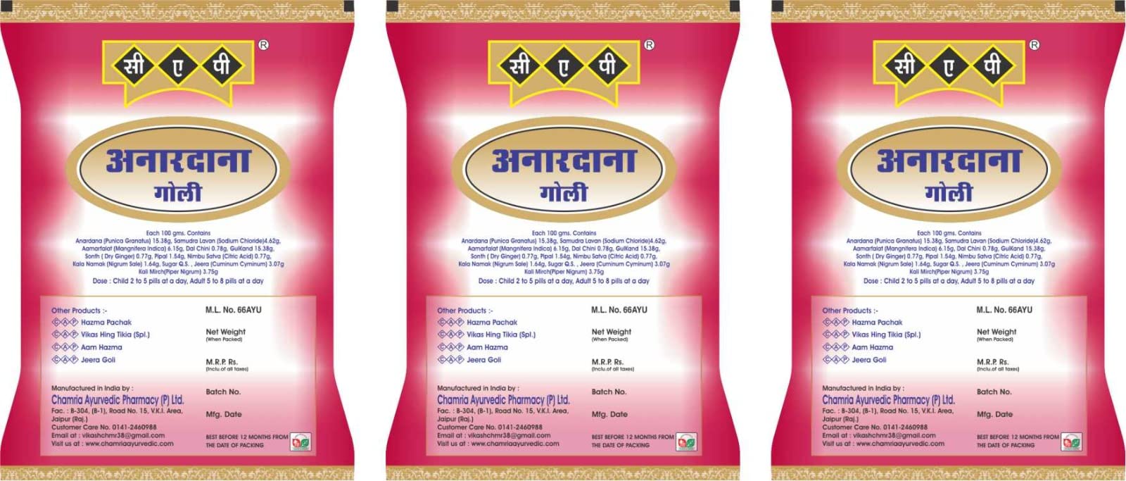 CAP Anardana Goli Churan Tasty Healthy Digestive Pouch - 400 Gms Each (Pack of 3)
