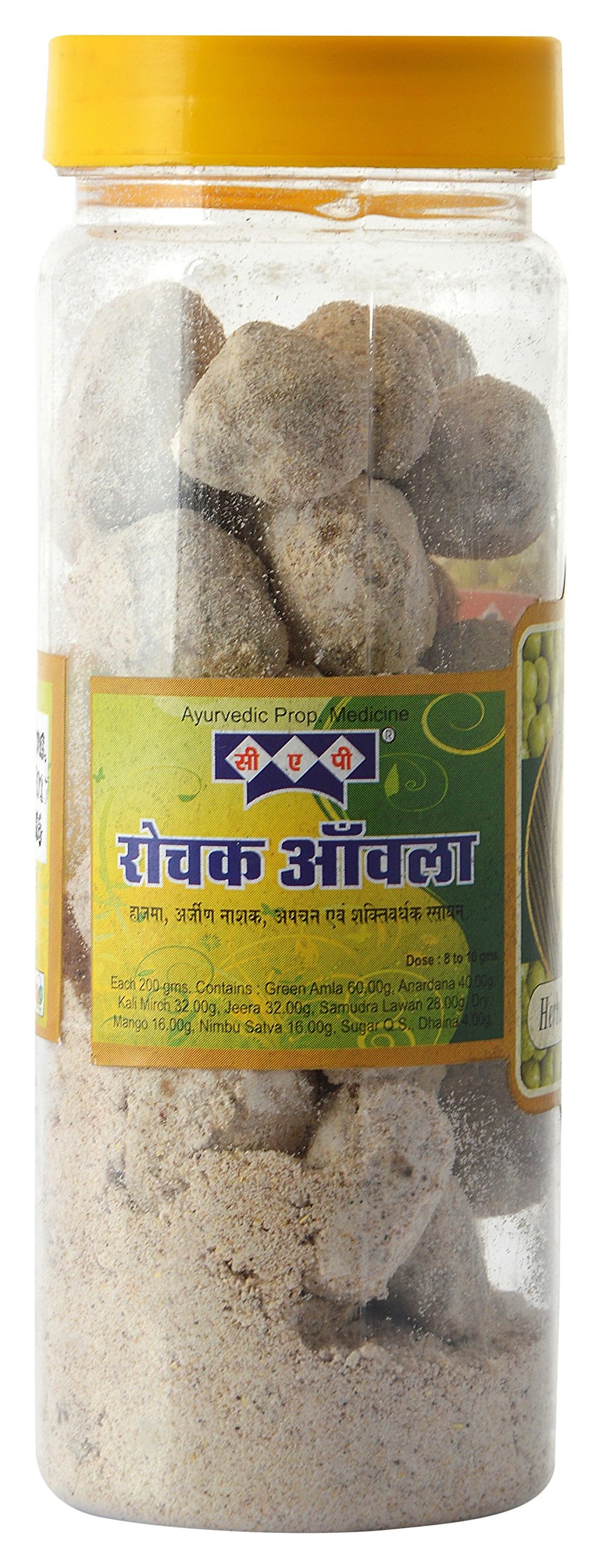 Ingredients: Amla (Hara Susak) Anardana Kali Mirch Jeera Salt Nibusatt Amarphalak Dhaniya Sugar.