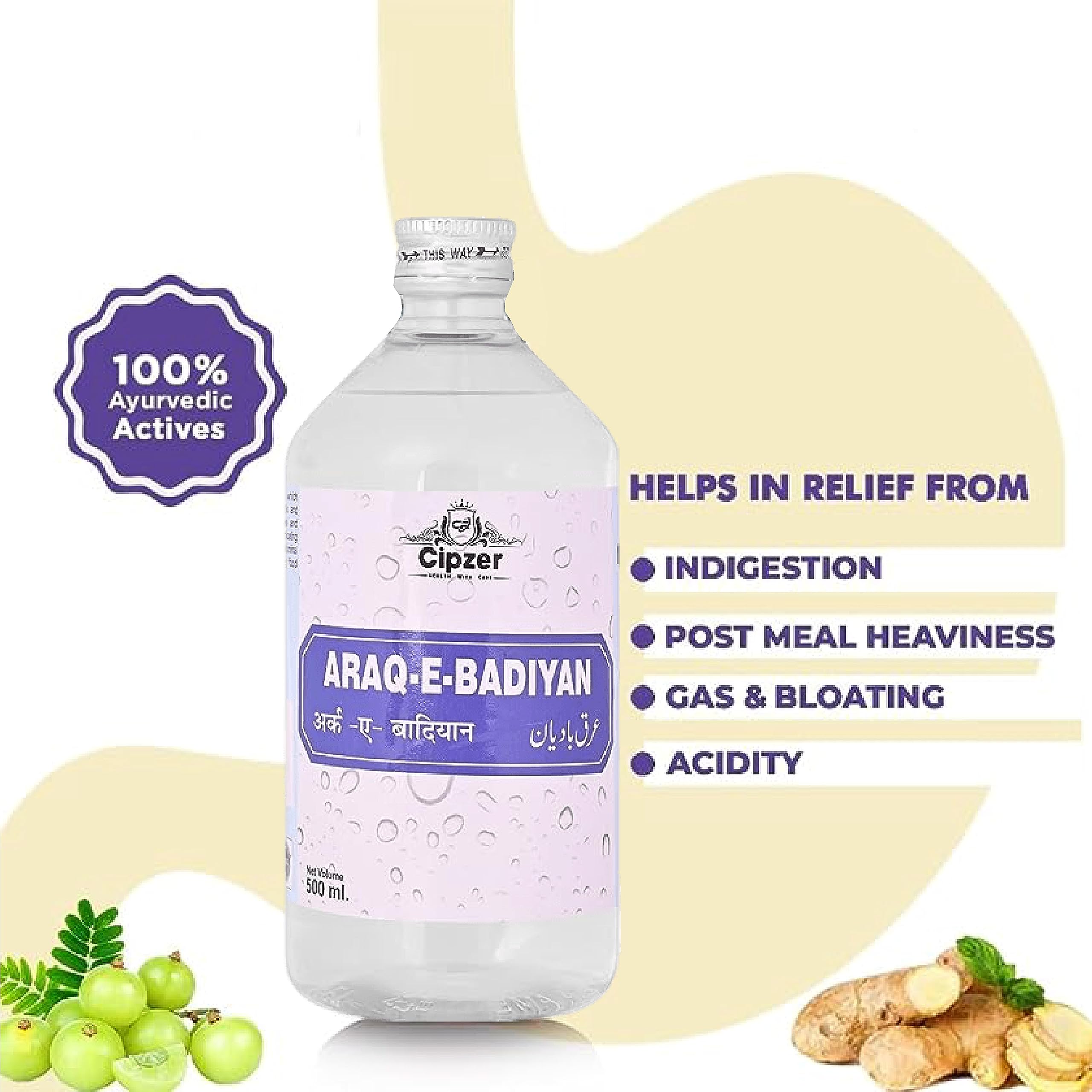 Cipzer Arq-e-Badiyan - For Digestion Acidity | Constipation and Gas Relief | Helps Improve Digestive Immunity- 500 ml (Pack of 1)