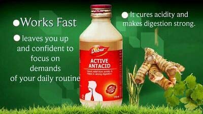 Dabur active antacid is an effective Ayurvedic formulation enriched with healing ingredients like trivirt bhringaraja guduchi yashtimadhu etc. for quick and effective relief from acidity and gas. It improves digestion and provides lasting relief from acidity.