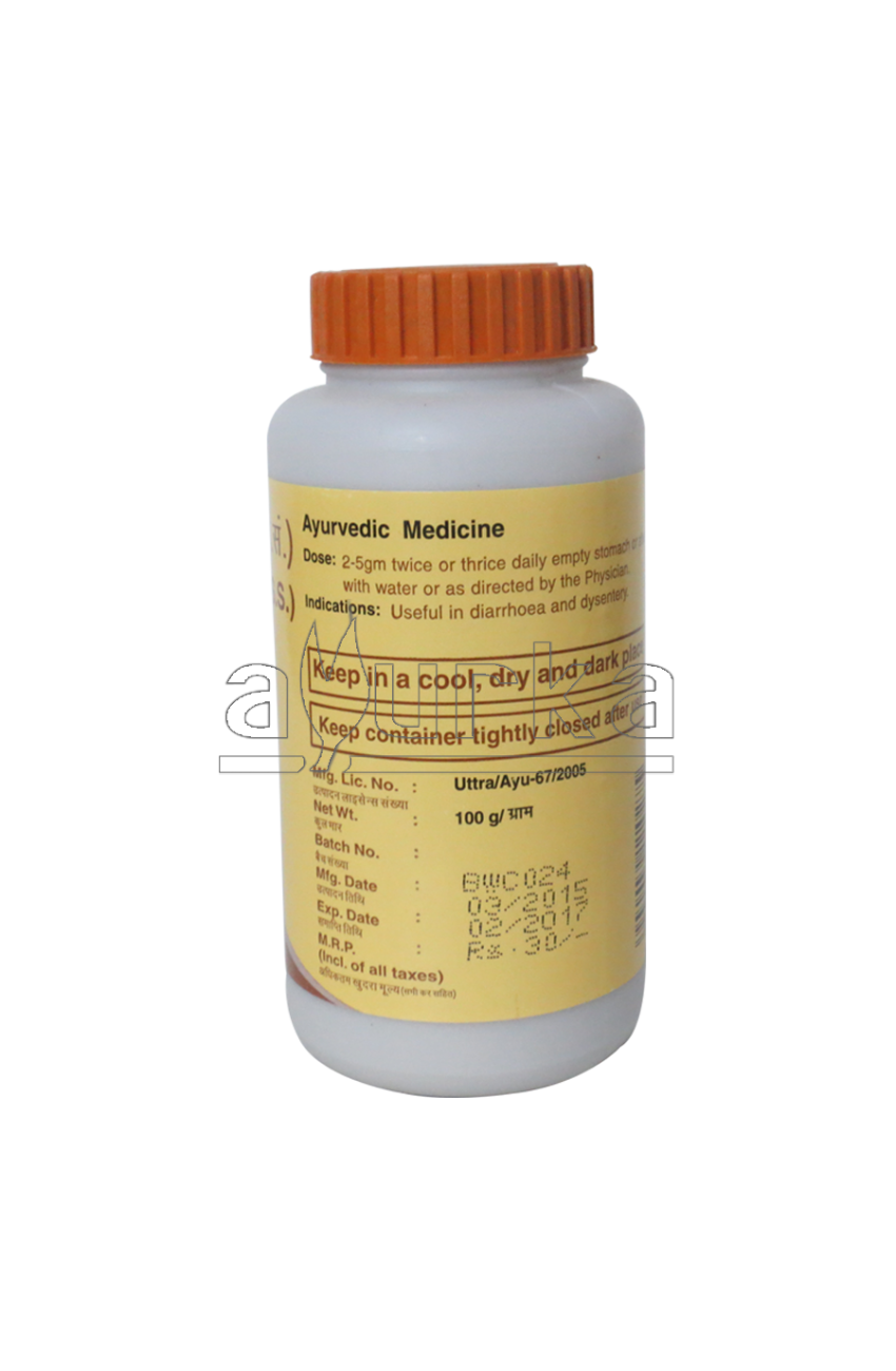Divya Bilwadi Churna is known to be very effective remedy for hyperacidity. It reduces nausea and vomiting. It is effective in curing the ailments of digestive organs. It cures digestive diseases know as sprue. It clears the toxins from the body. It promotes insulin secretion and utilization. It is beneficial in diarrhoea. It maintains the digestive system. It helps in various types of gastric discomforts. It gives nourishment to heart and mind. It helps in purifying the blood. It rejuvenates the body cells. It energizes the body cells and help different organs to perform well.Bilwadi Churna cures upset stomach, diarrhoea and dysentery. Its herbal properties eliminate harmful micro-organisms from your digestive tract, facilitates normal absorption of nutrients in intestines and stimulates digestive enzymes which aid in digestion. Bilwadi Churna has cooling effect on stomach and eases abdominal pain and discomfort immediately. It is made from natural extracts with no side effects. Bilwadi Churna combines the goodness of bel with other herbs which boost your digestive system. Get holistic cure from all digestive disorders with Bilwadi Churna.* Gastric Discomforts* Diarrhoea* Nausea* Vomiting* Sprue* Hyperacidity* Bel Giri* Mochras* Sounth* DhaiPhool* Dhania* Sounf* SabjPatra