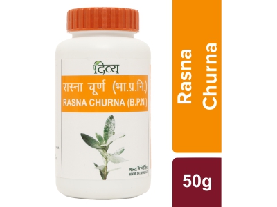 Divya Rasna Churna contains Rasna (Pluchea lacneolata) as the main ingredient. A natural cure for problems of the nervous system.Benefits - Helps in the conditions like neuritis, sciatica, and chronic inflammation of the nervous system.Used to treat Rheumatoid arthritis and Vata disordersUseful in health problems related to the female Genital system like Amenorrhoea, dysmenorrhoea.Acts as an antipyretic.Useful in skin diseases like itching, and eczema.