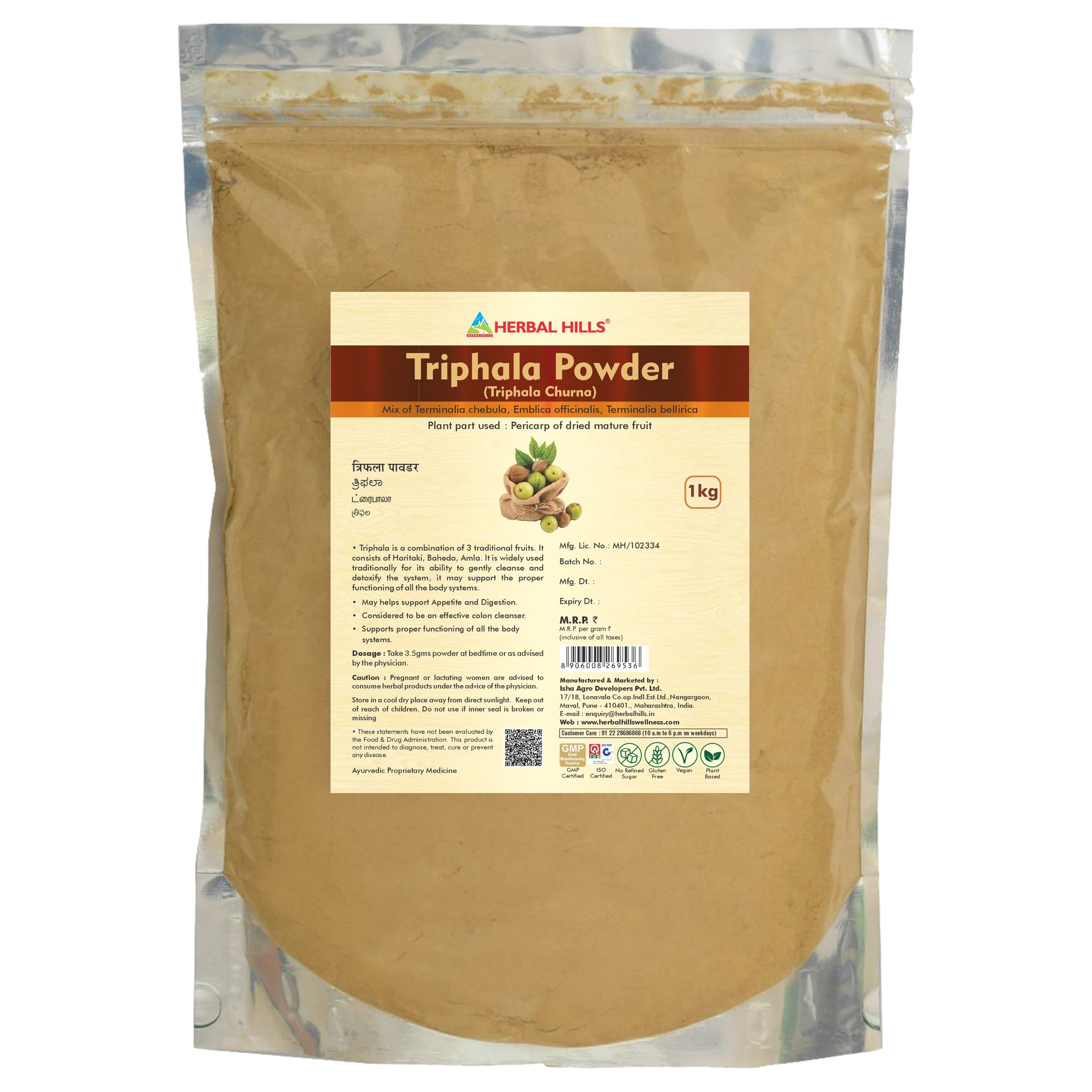 Herbal Hills is a leading Manufacturer Supplier & Wholesaler in India of Ayurvedic product Triphala Churna. Triphala churna is a blend of Amla Baheda Harde which is synergistically processed with highly advanced technology at Herbalhills. Our products are made out of best quality and authentic Ayurvedic herbs available in India which are specially selected and manually graded to give best results. Herbalhills Triphala churna may support the deigestive function improve the metabolism and act as a colon cleanser. Our Triphala churna is an Ayurvedic formulation of 3 herbs such as Amla Baheda & Harde. They have antioxidant antiviral deigestive laxative & amazing healing properties. The blend of the 3 herbs balance the tridoshas (Vata Pitta Kapha).
