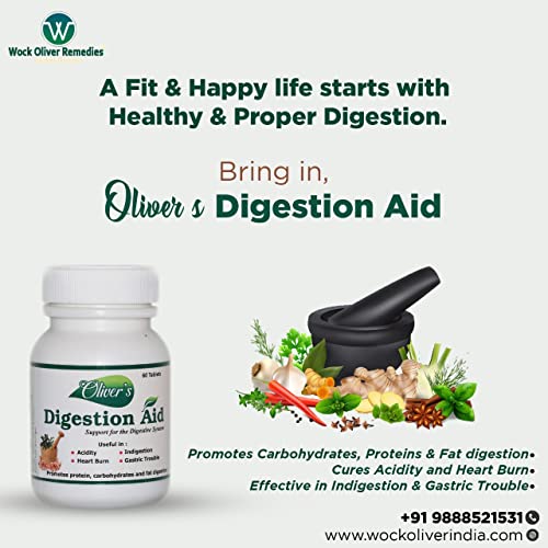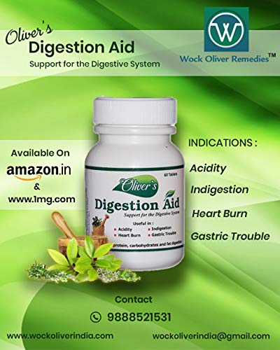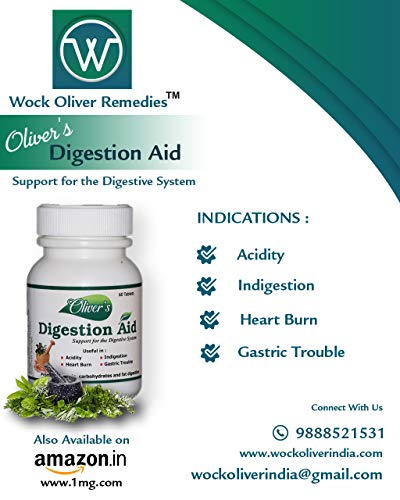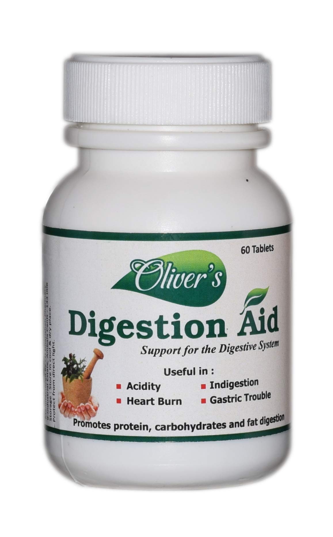 Oliver's Digestion Aid is a first of its kind product derived from multiple combinations of herbs with proven results as a support for the Digestive System. It is useful in acidity indigestion heart burn and other gastric troubles.Oliver's Digestion Aid promotes carbohydrates proteins and fat digestion. It consists of extracts of specific parts of specific species of herbs scientifically processed without affecting the chemical properties of the active ingredients (coumestans alkaloids thiopenes flavonoids polyacetylenes triterpenes and their glycosides). Extracts and metabolites from the used Herbal parts have been known to possess pharmacological properties to give maximum benefits.Oliver's Digestion Aid has been well researched and tried and also approved by AYUSH Govt. of India.