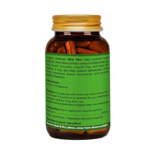 Organic Wellness Aloe Vera Nutritional capsules for Men & Women | Helps Nourish Skin & Hairs | Boost Immune System | Supports Healthy Digestion - 90 Veg Capsules
