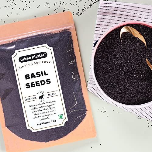 Urban Platter basil seeds (sabja) 850g the basil seeds that are used for eating are the seeds from the sweet basil plant Ocimum basilicum. They are also called Thai basil seeds Falooda sabja subza selasih or tukmaria. This is different from the holy basil plant Ocimum tenuiflorum which is also called tulsi. Blend in a lemonade or sprinkled over kulfi they impart their own fresh and grassy touch. You can munch on these seeds as a low-calorie snacking alternative. Add it to pastas or soups for a crunchy feel. Health benefits helps in weight loss reduces body heat relieves constipation and bloating for healthy skin and hair how to use/directions these are a few different ways you can start eating basil seeds: add them to drinks such as fruit juices coconut milk or teas. Blend them into smoothies. Sprinkle on top of salads. Mix into vegan cheeses or cream sauces. Use them in desserts where you would use tapioca or other thickeners. Combine with yogurt and fruit. ' ' .