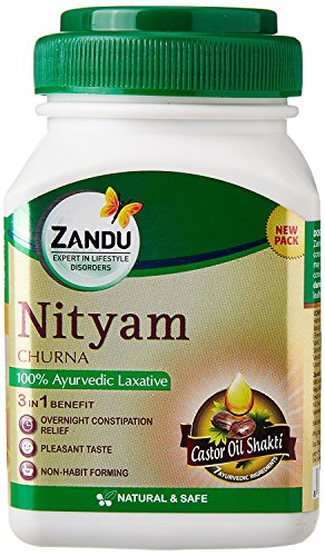 Zandu Nityam Churna an Ayurvedic laxative developed by Padmashree Vaidya Suresh Chaturvedi & panel of experts is a revolutionary formulation enriched with 7 powerful laxative herbs like Castor Oil Triphala & Saunf. These herbs gently cleanse lubricate & moisturize intestinal walls ensuring regular bowel movements.
