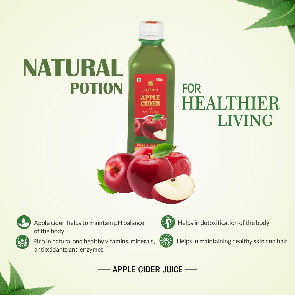 BALANCES pH LEVELS: Axiom Apple Cider Vinegar This unfiltered ACV helps in balancing the body's pH levels aiding in detoxification and overall wellness. It supports a healthy internal environment for overall well-being.