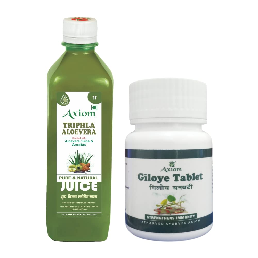 Axiom Combo Care Pack of Triphla Aloevera 1000 ml + Giloye Tablets | Infused with the ingredients of Triphla Aloevera Herbs | Helpful for Constipation and Eyesight | Ayurvedic Products