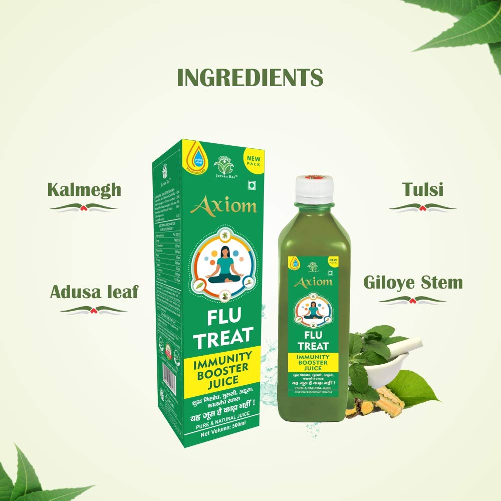 Axiom Jeevanras Flu treat Juice - 500ML | Ayurvedic Juice with Giloye Stem and Tulsi Panchang | Immunity Booster for Fighting Flu & Fever | Relief for Cold & Cough | For All Seasons | No Added Sugar