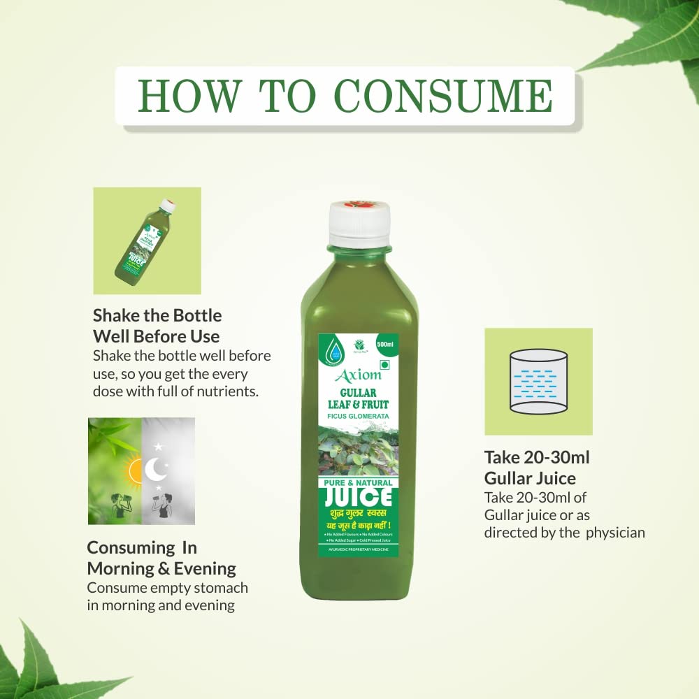 Axiom Jeevanras Gullar Leaf Juice; 500ml - Pack of 2|No Added Colour | No Added Flavor | No Added Sugar | WHO-GMPGLPISO Certified Natural Product