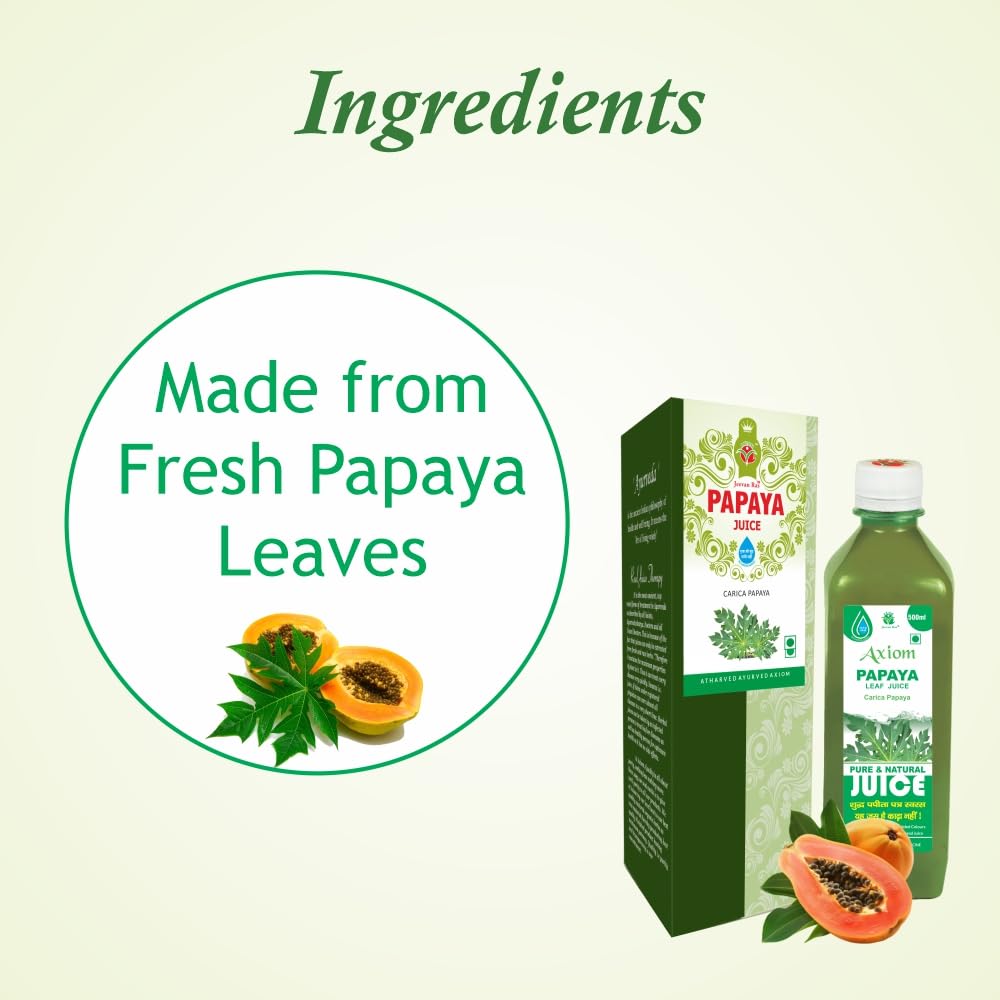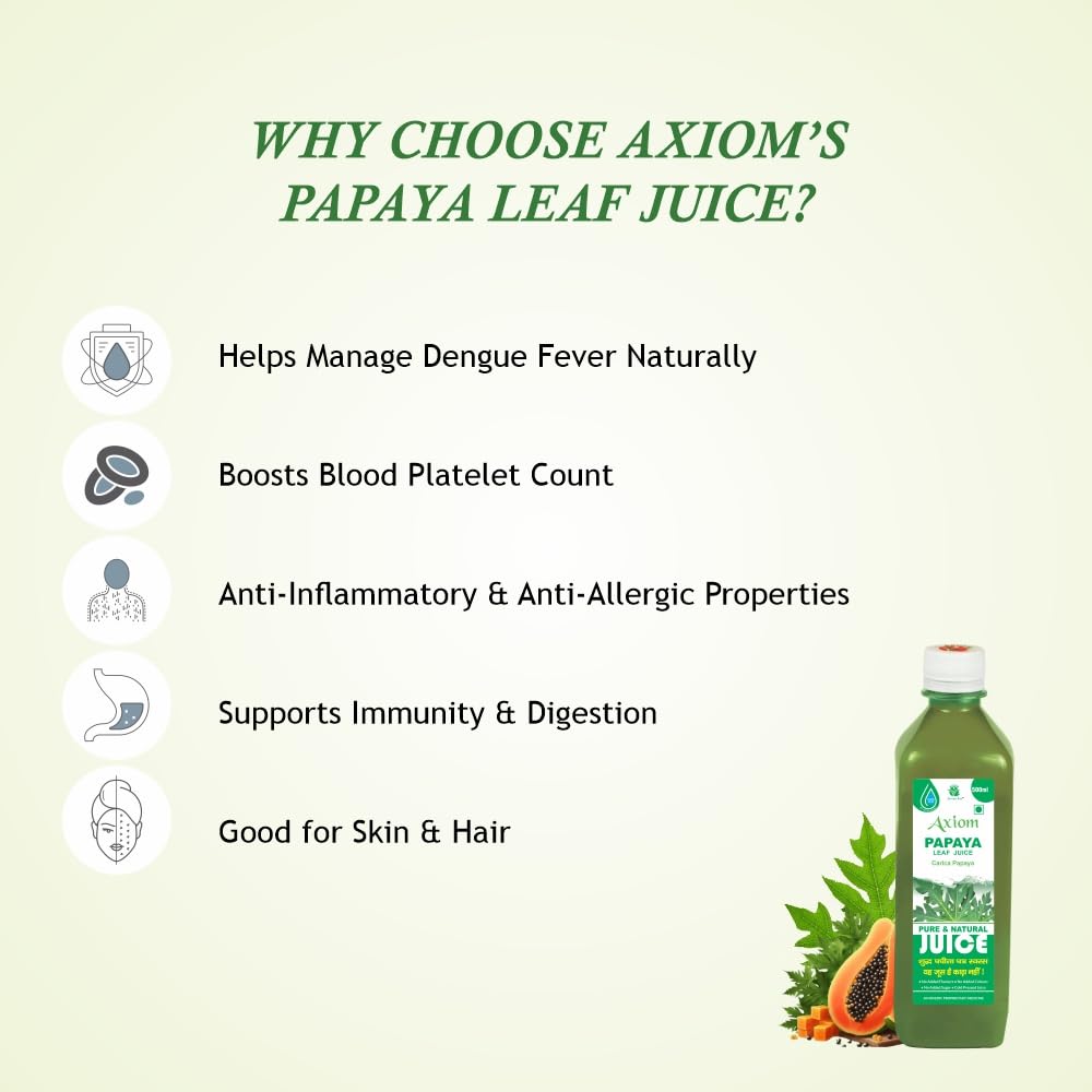 Axiom Papaya leaf Juice | Helpful in boost platelets count | Made With Papaya Leaves | Improves Digestion system.