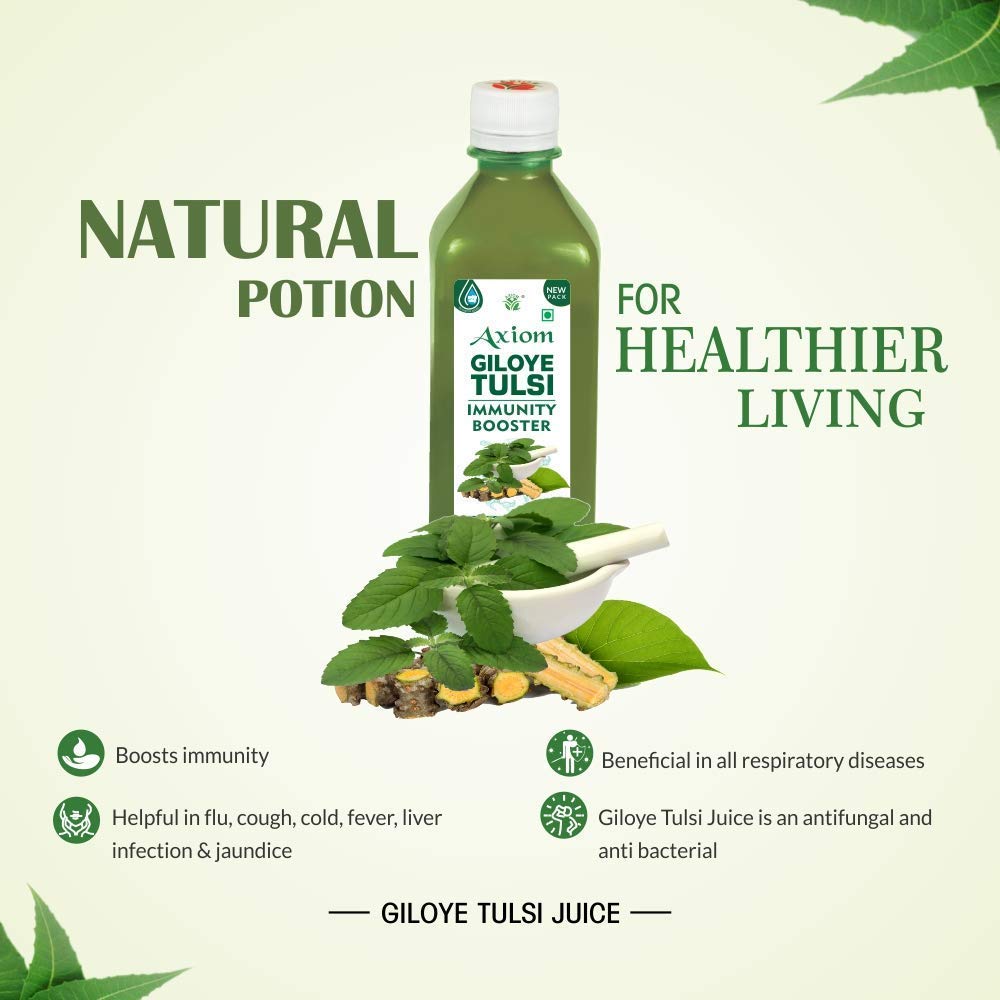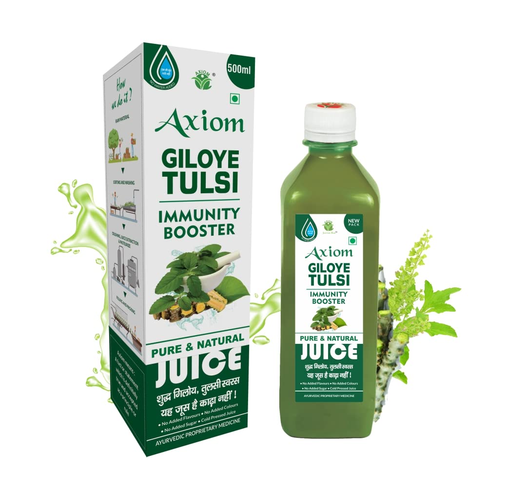 WHY AXIOM TULSI PANCHANG & GILOY JUICE: We use freshly-cut nutrient-rich Tulsi Panchang to give an added edge. Only matured hard Giloy stems are used for juice extraction because they have the maximum nutrition. And we add no sugar/sweeteners/chemicals. T