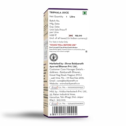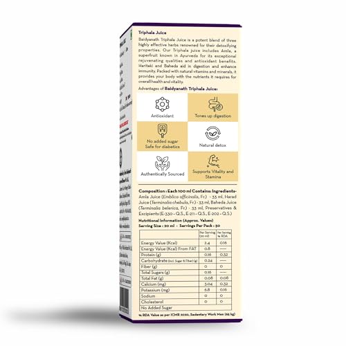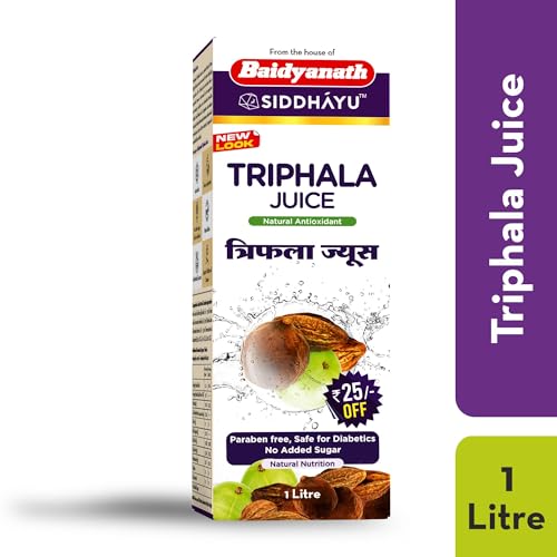 Baidyanath Triphala Juice has the ability to lower cholesterol. Vitamin C is also present in it. Bahera is another ancient plant having a detoxifying effect on the muscles blood and fatty tissues of the body and is quite useful against conditions that involve excess mucus in the system and is quite beneficial for bone formation. Haritaki is known as the Tibetan âKing of Medicineâ. It can be used as a laxative and is beneficial in constipation. It also acts as an anti-inflammatory agent and is very effective in acidity hyperacidity or acid reflux. .