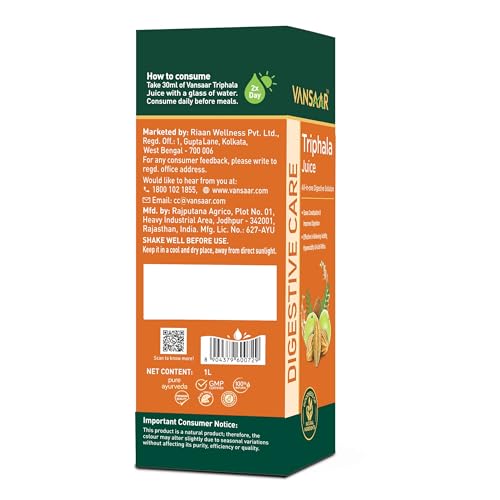 MAINTAINS A HEALTHY & STRONG DIGESTIVE SYSTEM: Triphala juice from Vansaar is a natural gut cleanse juice which helps treat major digestive issues from the root naturally and improve overall digestion and gut health. Including this digestive care juice in