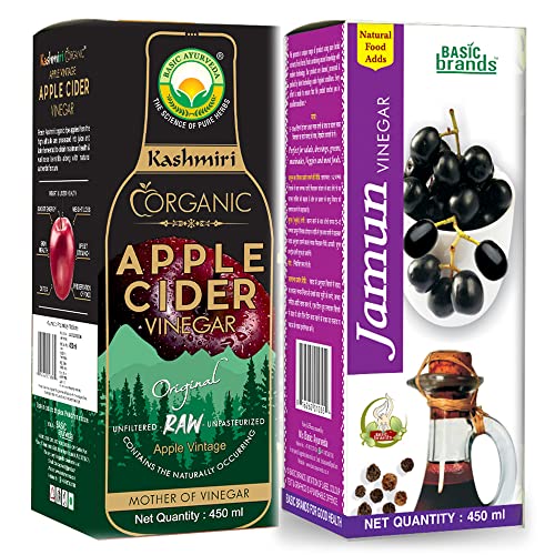 Basic Ayurveda Apple Cider Vinegar – 450ml + Jamun Vinegar (Indian Blackberry Sirka) – 450ml | Sugar & Digestion Support