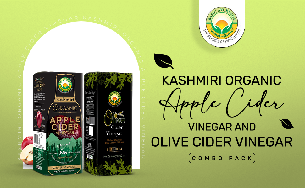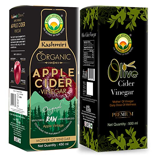 Basic Ayurveda Apple Cider Vinegar – 450ml + Olive Vinegar – 500ml | Powerful Detox Combo | Weight & Skin Support