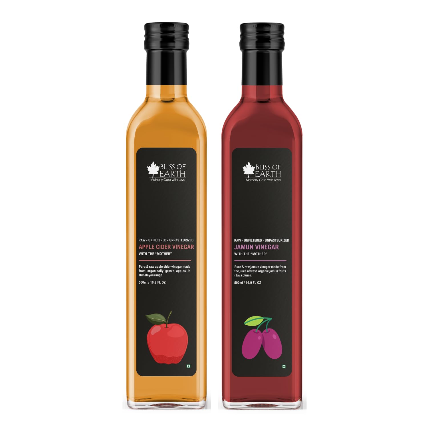 Bliss of Earth Organic Himalayan Apple Cider Vinegar & Jamun Vinegar With Mother of Vinegar, Raw, Unfiltered & Unpasteurized, 500ml