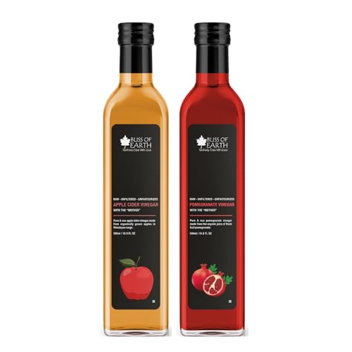 Bliss of Earth Organic Himalayan Apple Cider Vinegar & Pomegranate Vinegar, Raw, Unfiltered & Unpasteurized, 500ml Each