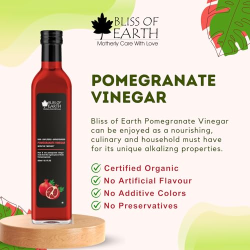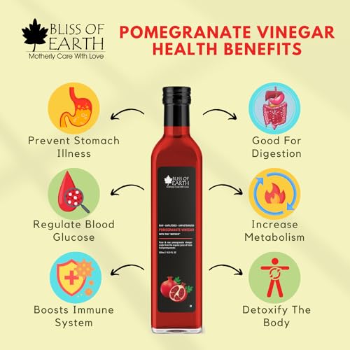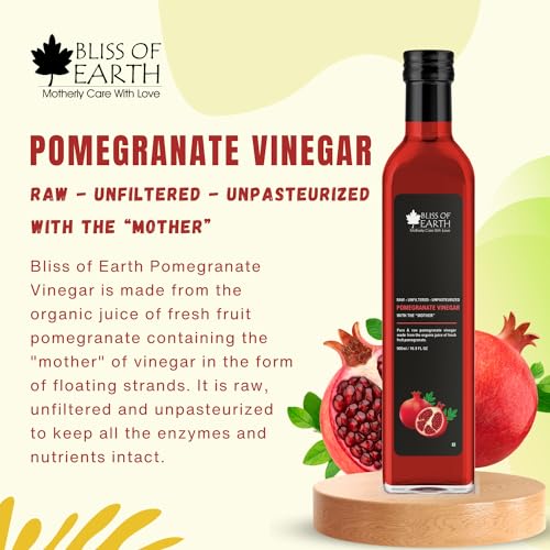 Bliss of Earth Raw Pomegranate Vinegar With Mother, Unfiltered Anar Ka Sirka For Cooking, Healhty Digestion & Metabolism, 500ml