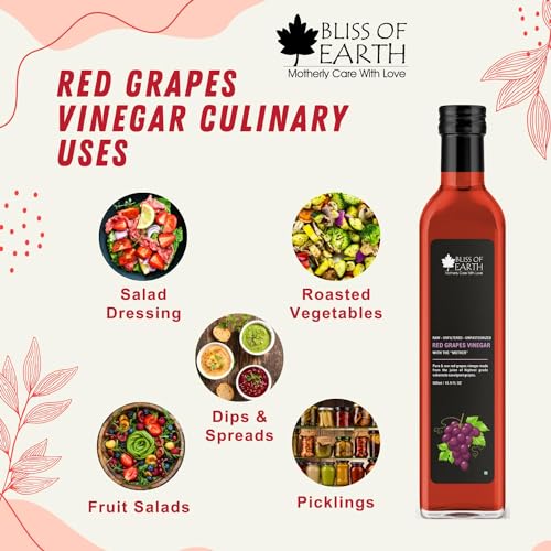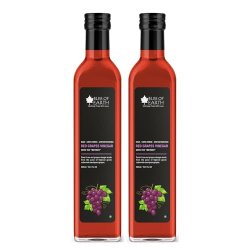 Bliss of Earth Raw Red Wine Vinegar With Mother, Unfiltered Red Grapes Vinegar For Cooking, Salad Dressings and Marinating Fresh or Grilled Vegetables, 500ml (Pack of 2)