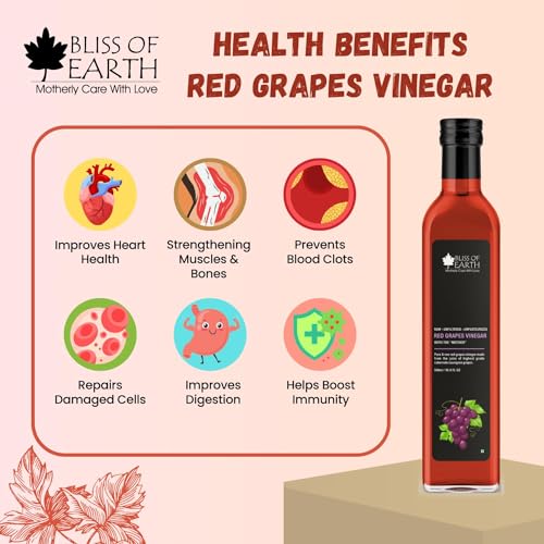 Bliss of Earth Red Wine Vinegar is made from the juice of high quality cabernet sauvignon grapes containing the "mother" of vinegar in the form of floating strands. It is raw unfiltered and unpasteurized to keep the enzymes and nutrients intact. Bliss of Earth Red Wine Vinegar can be enjoyed as a nourishing culinary tonic and household must have for its unique alkalizing properties.Ingredients: Red grapes juice fermented to 4% acidity.DIRECTION FOR USE: Mix 2-3 tbs (10-15ml) of Bliss of Earth Red Wine Vinegar in a glass of luke warm water and consume daily on empty stomach. You can also add red wine vinegar to your meal as a salad dressing.CONTAINS NO ARTIFICIAL FLAVOR COLOR OR PRESERVATIVES.It contains strands of "MOTHER" of vinegar a mark or pure vinegar.STORAGE INFO: Refrigerate and consume within 2 months after opening. Store in a cool and dry place away from direct sunlight.
