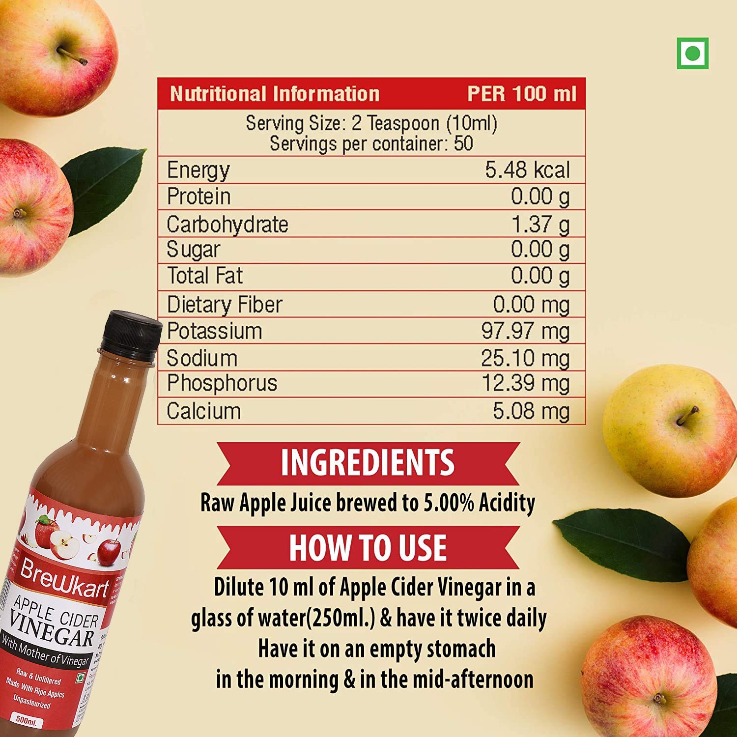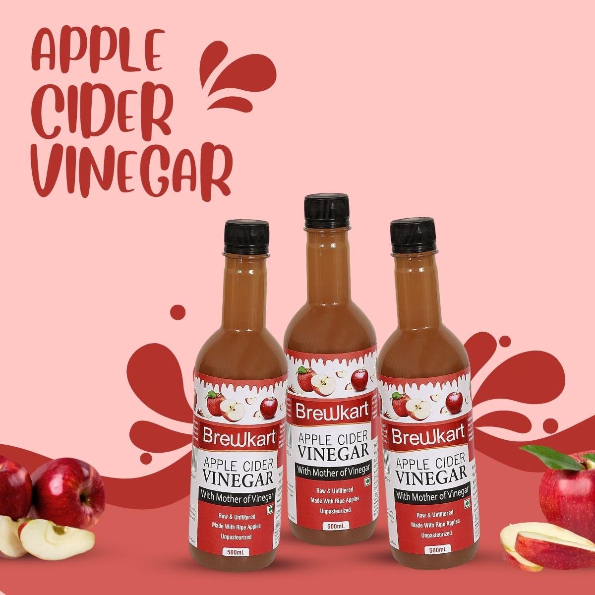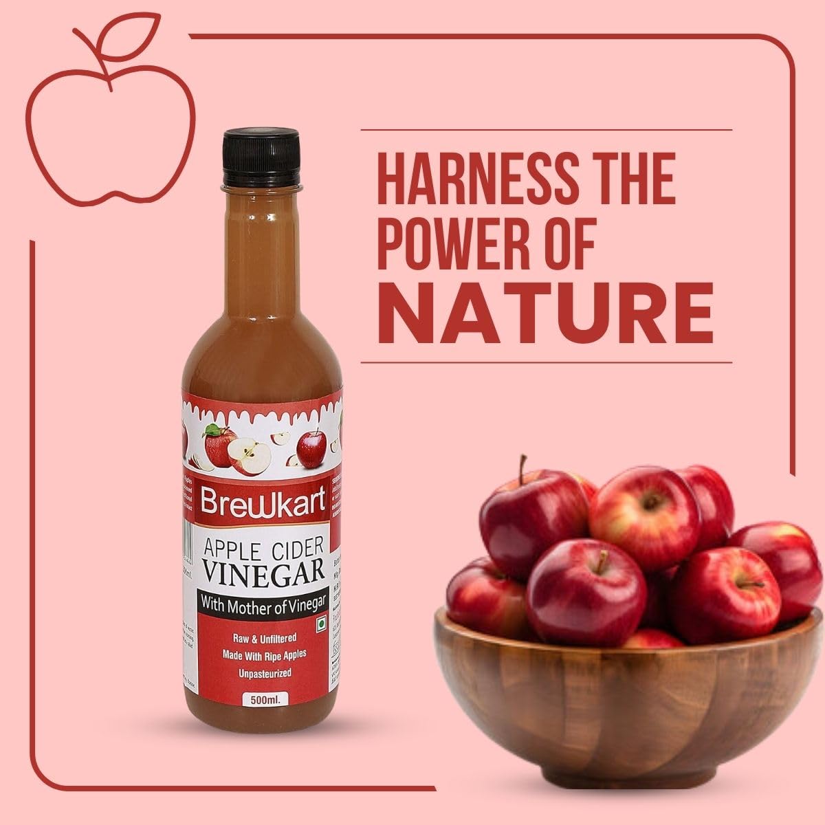 Pure Apple Vinegar with Mother Brewkart Apple Vinegar is made from 100% pure apples raw unfiltered and unpasteurized ensuring it retains the powerful "Mother" culture for enhanced wellness benefits.