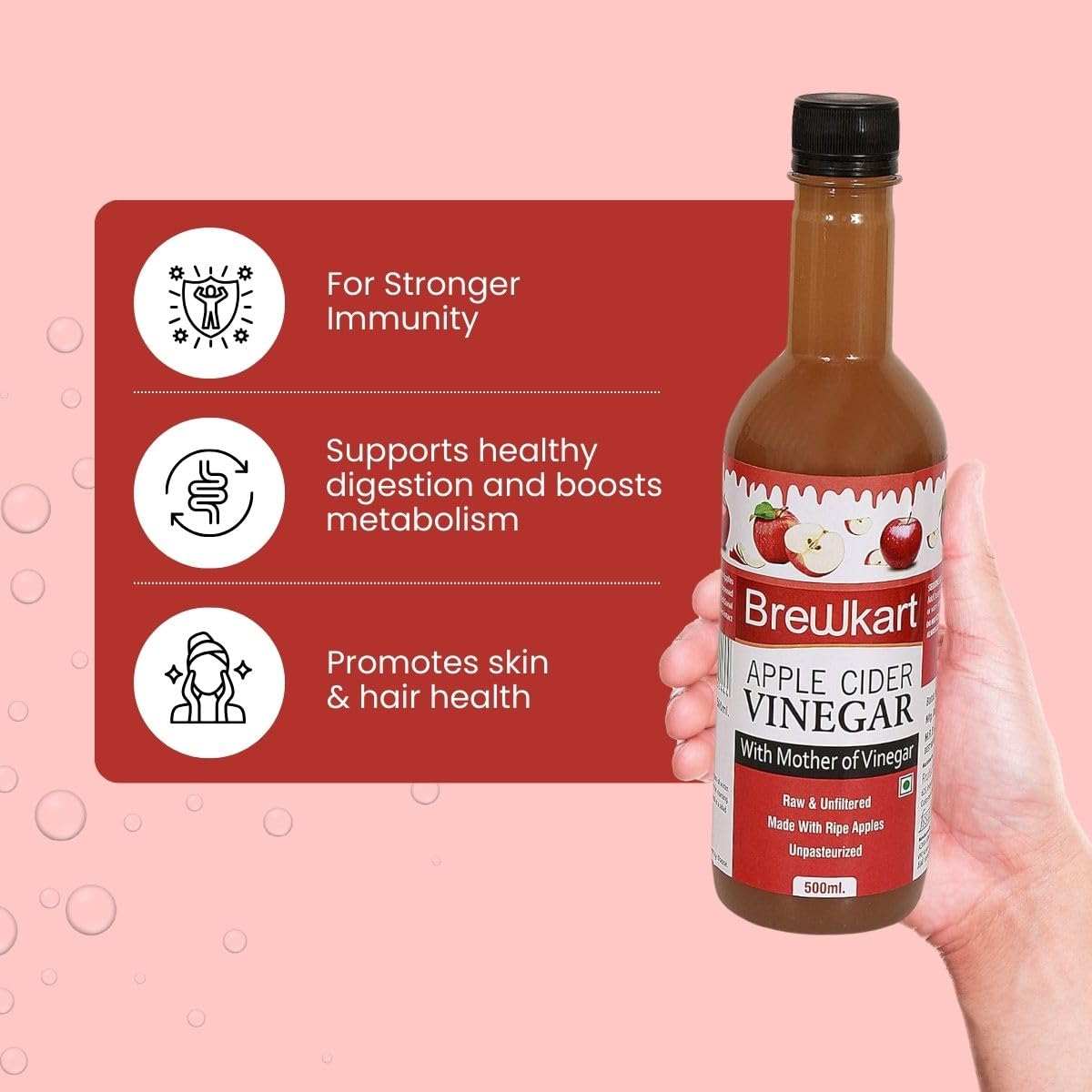 Brewkart Apple Cider Vinegar with Mother 500ml | Raw Unfiltered & Unpasteurized | Natural Health & Wellness Support