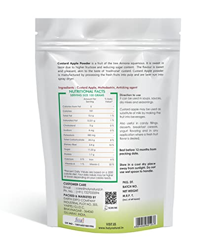 Real Taste & Aroma Holy Natural Spray Dried Custard Apple Powder is No added sugar colour flavour or preservative used even then all real characteristics aroma taste are intact. Rich in taste. 100% Pure & Natural Vegan Gluten free.