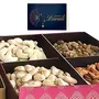 Opt for the Elegant Diwali gift boxes curated carefully to express your love and care towards your loved ones. This combo consists a collection of Premium Dry Fruits Assorted Gift Pack - 400g (Goan Cashews WL320 Large Raisins California Almonds Roasted Salted Pista Medium - 100g each) and a greeting card. Procured and packed fresh these dry fruits are crunchy and tasty. A perfect gift enjoyable by everyone. Our Premium gift box will out class all the cliched sweets & chocolates from the mainstream brands in terms of freshness taste and quality. Make this Diwali special and memorable choose the best gift for your family and friends.