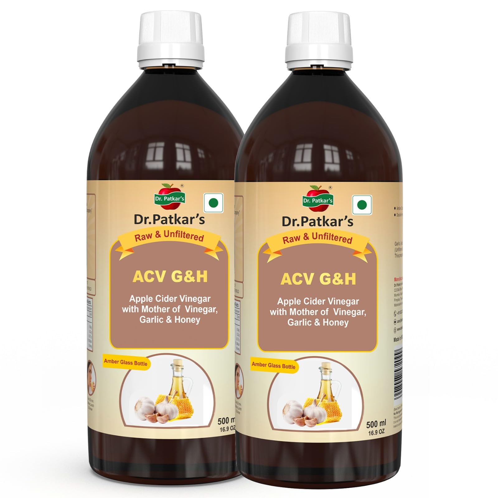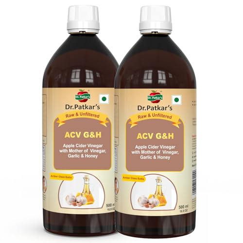 Dr. Patkar's Apple Cider Vinegar with Garlic & Honey 500ml (Pack of 2) | Unfiltered & Undiluted | Suitable for BP management and lowers bad cholesterol, Immunity (With Mother) 1000ML