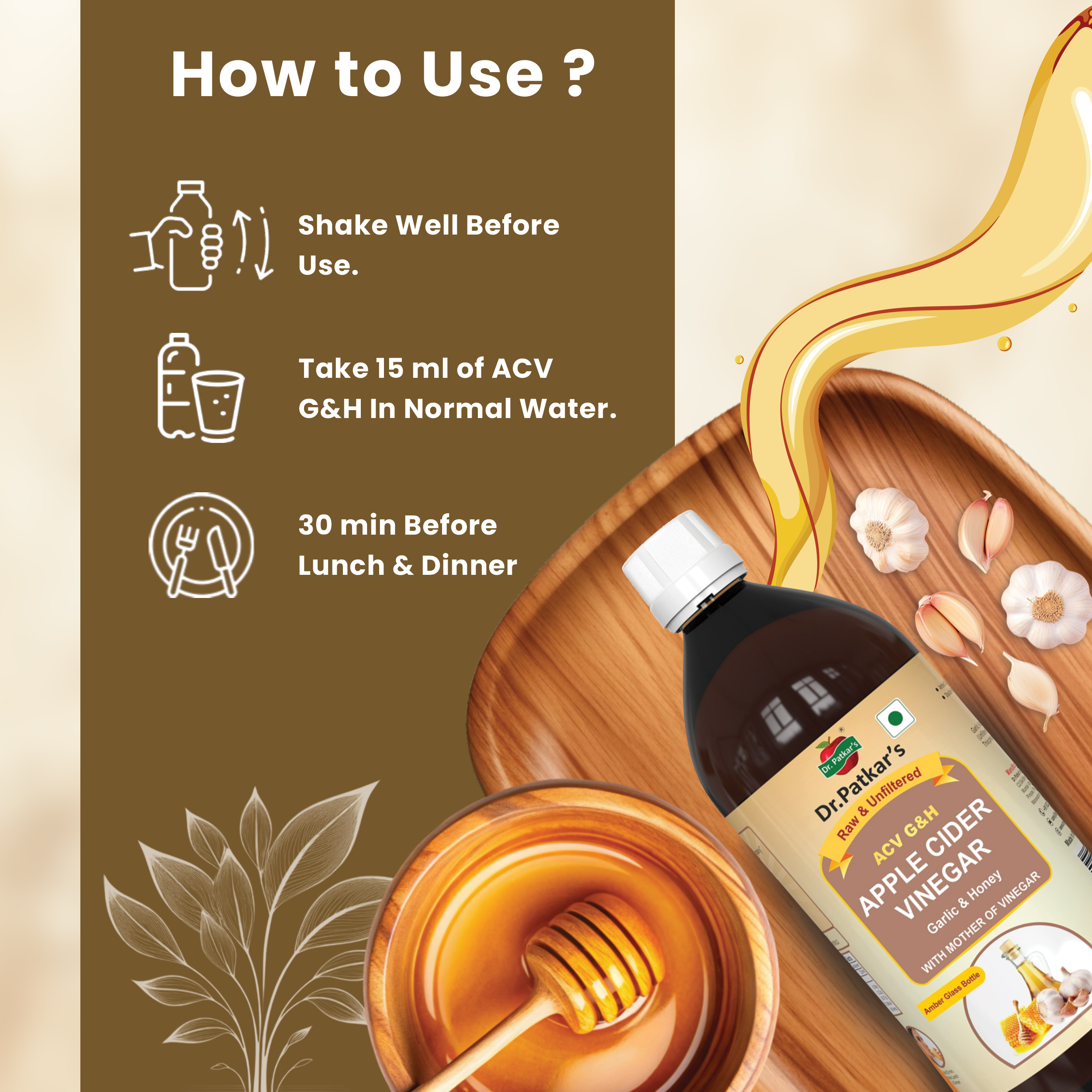 Dr. Patkar's Apple Cider Vinegar with Garlic & Honey 500ml. Unfiltered & Undiluted. Suitable for BP management and lowers bad cholesterol Immunity (With Mother) 500ML