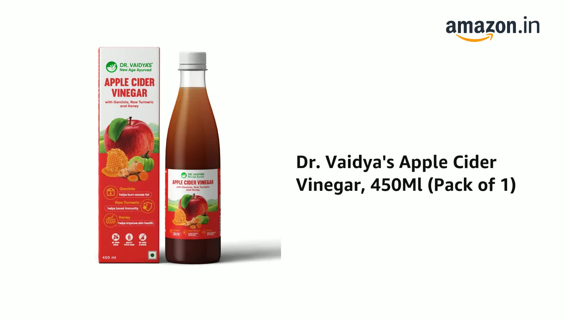 Dr. Vaidya's Apple Cider Vinegar | No Added Sugar| With Garcinia Raw Turmeric & Honey |Supports Weight Management with 6 Super Herbs | (450ml) Pack of 1
