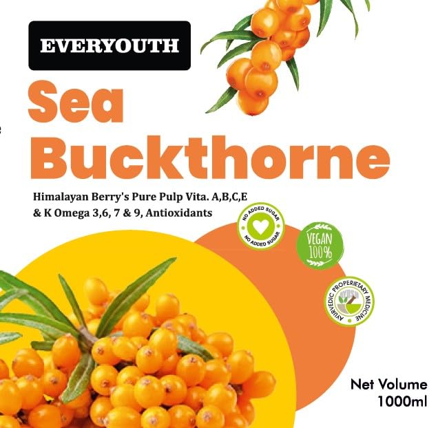 EVERYOUTH Himalayan Sea Buckthorn Pulp Concentrate 1000ml | Liquid Supplements | Rich in Vitamin C | Omega 3, 6, 7, and 9, and Antioxidants