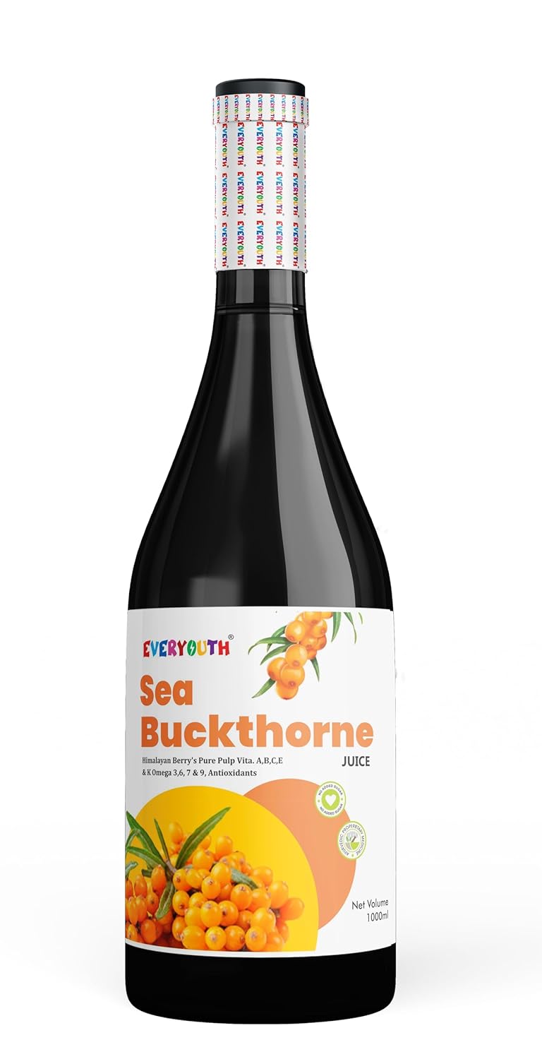 Everyouth Seabuckthorn Juice is a wholesome and invigorating health elixir, presented in a generous 1000 ml bottle and enriched with the goodness of Himalayan Berry. This natural elixir is meticulously crafted to bring you the numerous health benefits associated with Seabuckthorn, a nutrient-rich berry found in the pristine Himalayan region. Harvested at its peak of ripeness, the Seabuckthorn berries used in this juice serve as a potent source of essential Omega 3, 6, 7, and 9 fatty acids. These fatty acids are renowned for their role in supporting cardiovascular health, promoting skin radiance, and aiding in overall well-being. The Himalayan Berry infusion not only adds a delightful flavor to the juice but also contributes additional vitamins, minerals, and antioxidants. The juice is carefully processed to retain the natural essence of the Seabuckthorn berries, ensuring that you receive the maximum nutritional benefits with every sip. Everyouth Seabuckthorn Juice stands out as a natural and pure wellness solution, free from artificial additives and preservatives. Whether you're seeking a daily boost of vitality or aiming to enhance your nutritional intake, this juice offers a convenient and delicious way to incorporate the goodness of Seabuckthorn into your lifestyle. Embrace the richness of the Himalayas in every drop, and make Everyouth Seabuckthorn Juice a refreshing and healthful addition to your daily routine. Elevate your well-being with this exceptional blend of nature's finest ingredients, bottled for your holistic health and enjoyment.